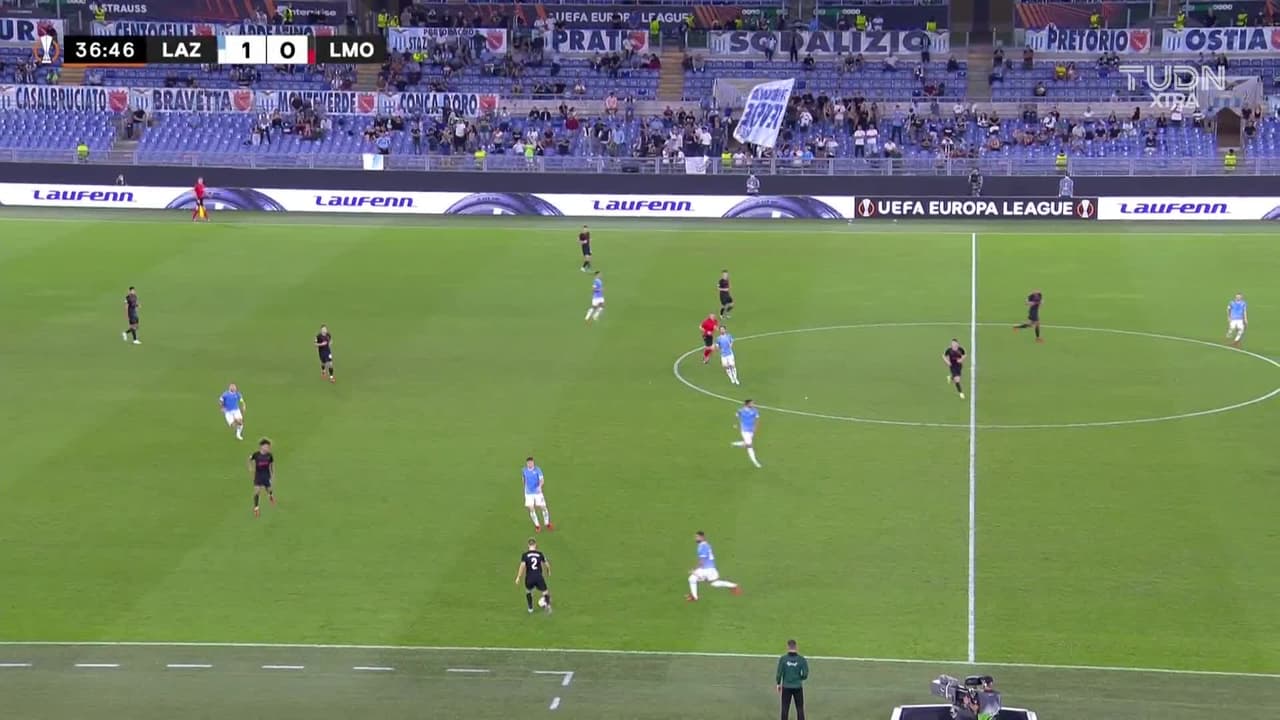 Tiro atajado por abajo a la izquierda. Felipe Anderson (Lazio) Disparo con la derecha desde el centro del área. Asistencia de Pedro.