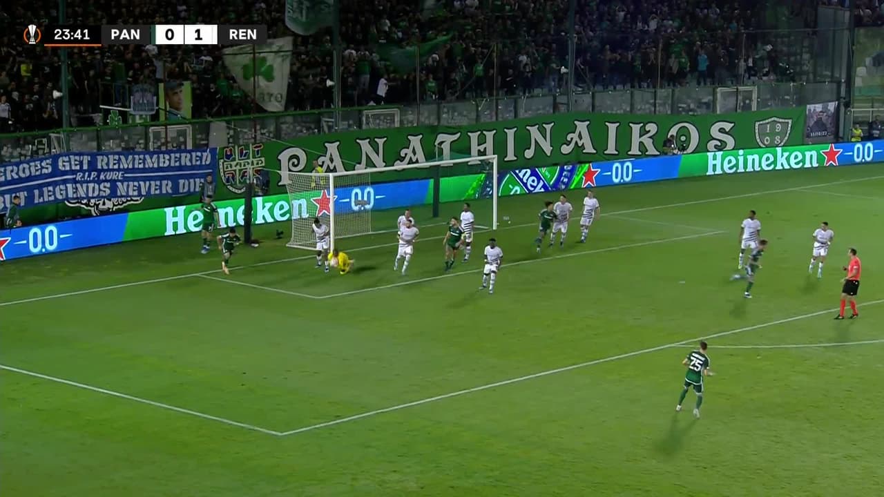 Tiro atajado al ángulo superior derecho. Fotis Ioannidis (Panathinaikos) Disparo con la derecha a quemarropa desde el lado izquierdo. Asistencia de Bernard con un centro al área.