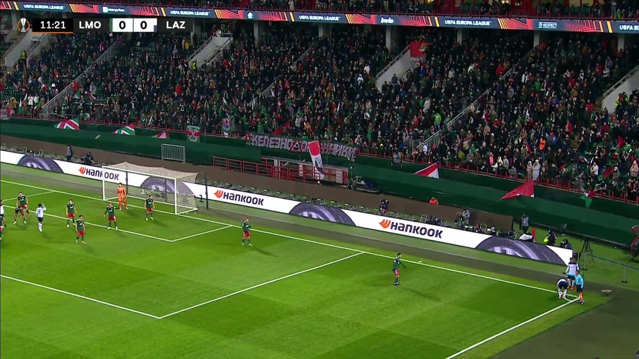 Tiro atajado raso al centro del arco. Francesco Acerbi (Lazio) disparo de cabeza desde el centro del área. Asistencia de Luis Alberto con un centro al área.