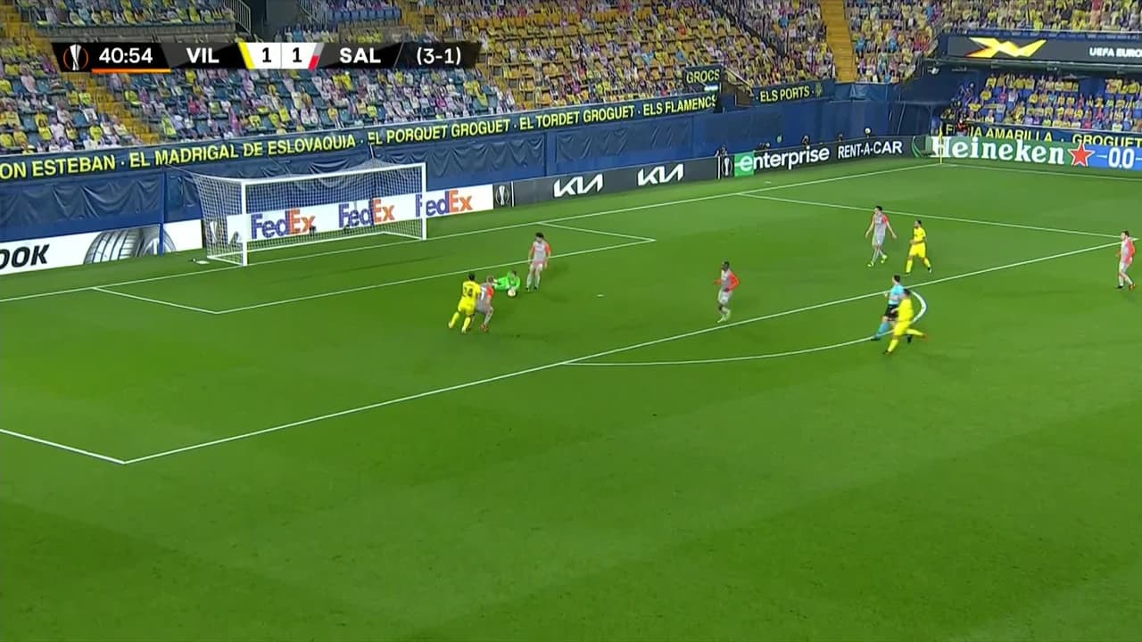 Tiro atajado raso al centro del arco. Paco Alcácer (Villarreal) Disparo con la derecha desde fuera del área. Asistencia de Manu Trigueros.
