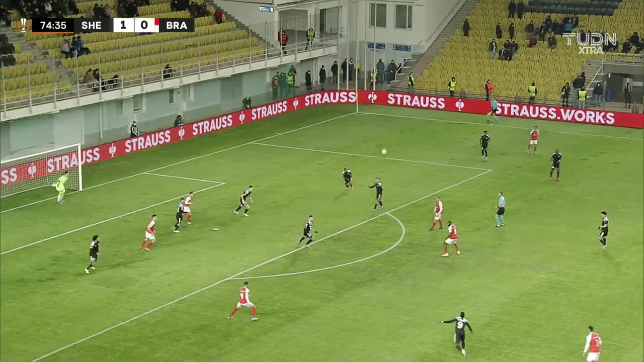 Tiro atajado por abajo a la izquierda. Francisco Moura (Sporting Braga) zurdazo sin ángulo desde la izquierda.