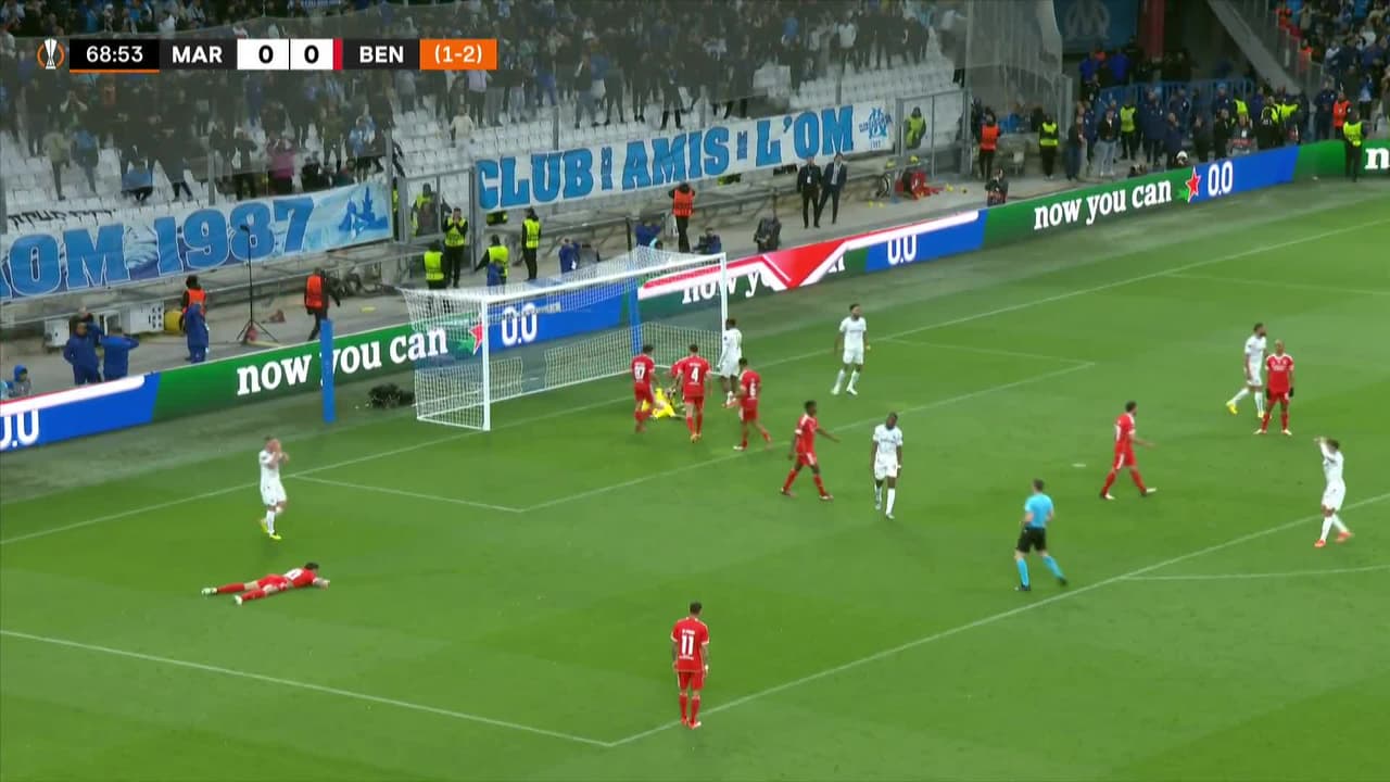 Tiro atajado. Geoffrey Kondogbia (Marseille) Disparo con la derecha desde el centro del área.