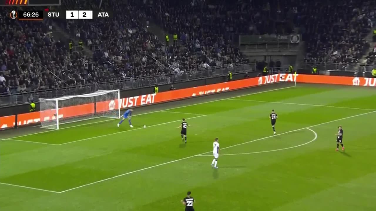 Tiro atajado raso al centro del arco. Gianluca Scamacca (Atalanta) Disparo con la derecha desde fuera del área.
