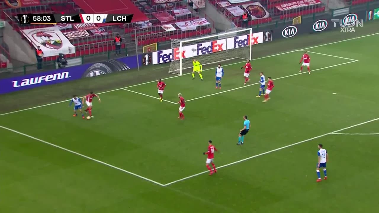 Tiro atajado raso al centro del arco. Gojko Cimirot (Standard Liège) zurdazo desde el lado derecho dentro del área. Asistencia de Noe Dussenne.