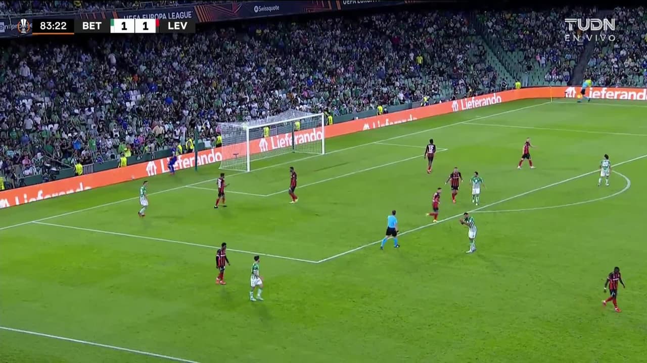 Tiro atajado. Guido Rodríguez (Real Betis) Disparo con la derecha desde fuera del área.