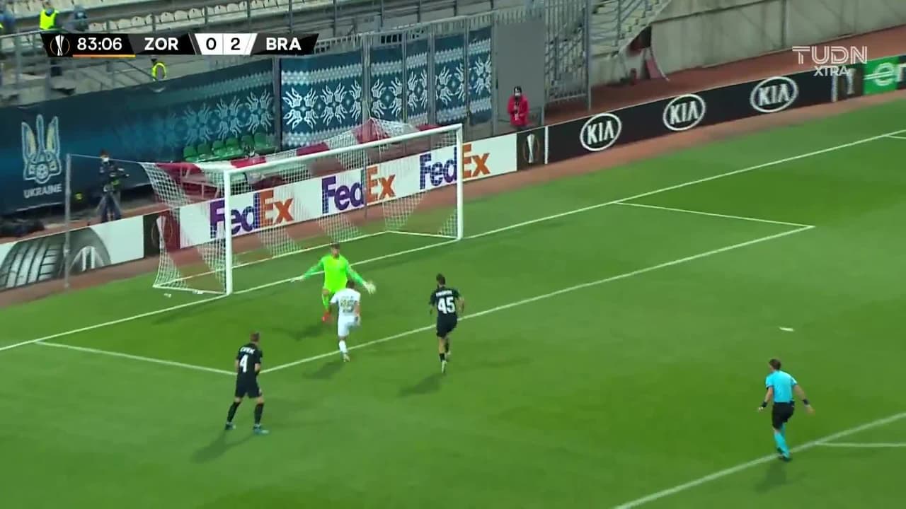 Tiro atajado raso al centro del arco. Guilherme Schettine (Sporting Braga) Disparo con la derecha desde el centro del área. Asistencia de Francisco Moura.