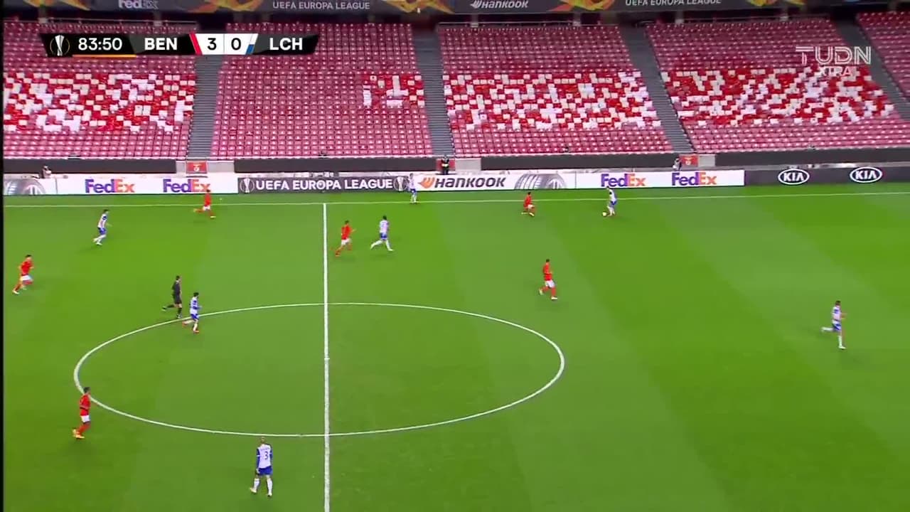 Tiro atajado. Haris Seferovic (Benfica) Disparo con la derecha desde el centro del área.