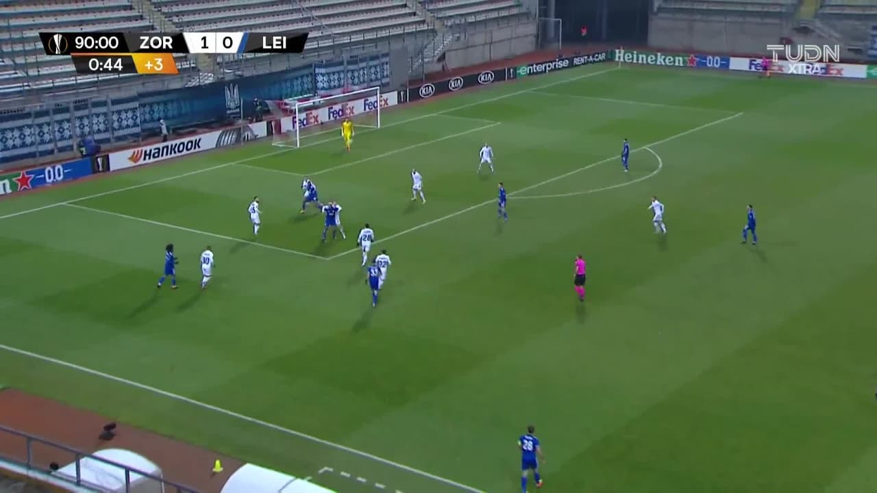 Tiro atajado. Harvey Barnes (Leicester City) zurdazo desde fuera del área.