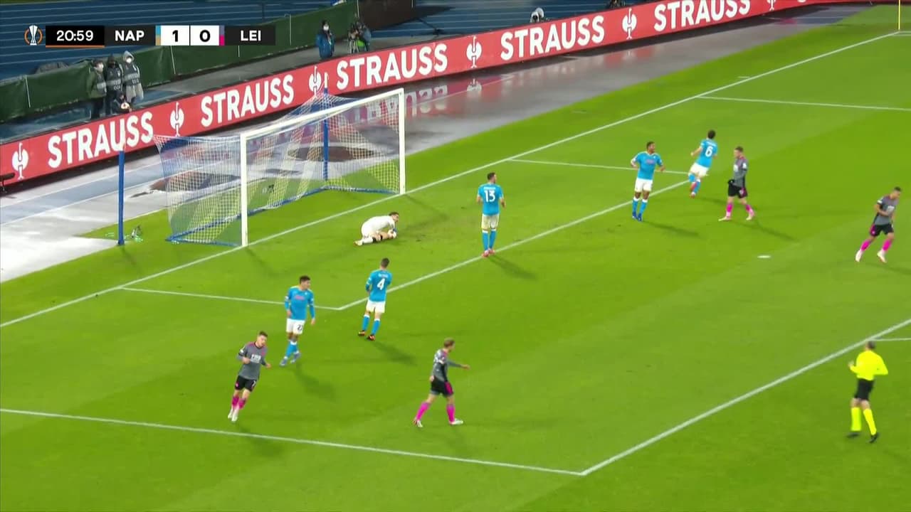 Tiro atajado raso al centro del arco. Harvey Barnes (Leicester City) zurdazo desde el lado izquierdo dentro del área. Asistencia de Jonny Evans con un pase de cabeza.