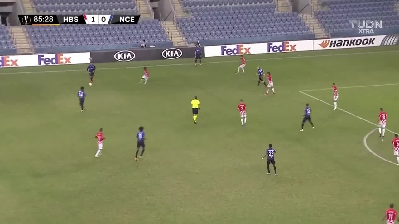 Tiro atajado. Hichem Boudaoui (Nice) Disparo con la derecha desde fuera del área.