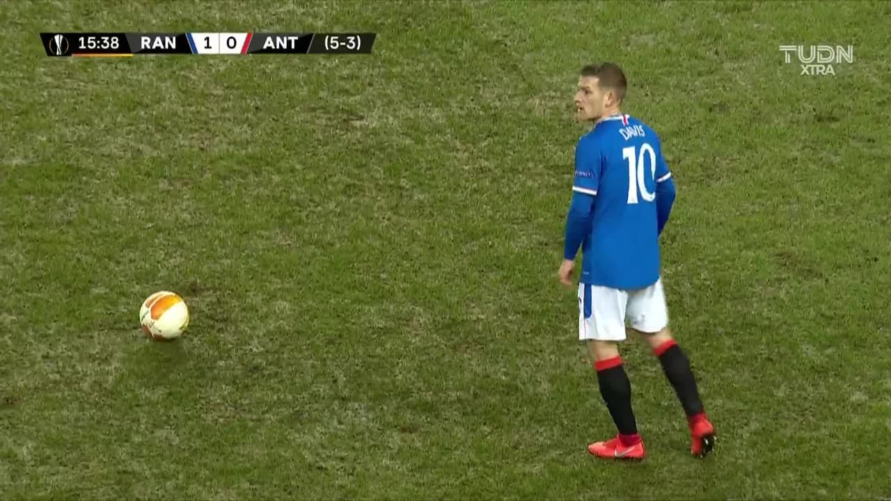 Tiro atajado por abajo a la izquierda. Ianis Hagi (Rangers) Disparo con la derecha desde fuera del área. Asistencia de Joe Aribo.