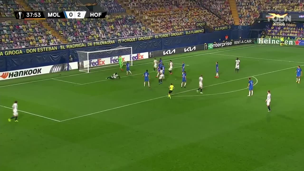 Tiro atajado Por arriba en el centro del arco. Ihlas Bebou (TSG 1899 Hoffenheim) Disparo con la derecha desde el centro del área. Asistencia de Munas Dabbur con un pase de cabeza.