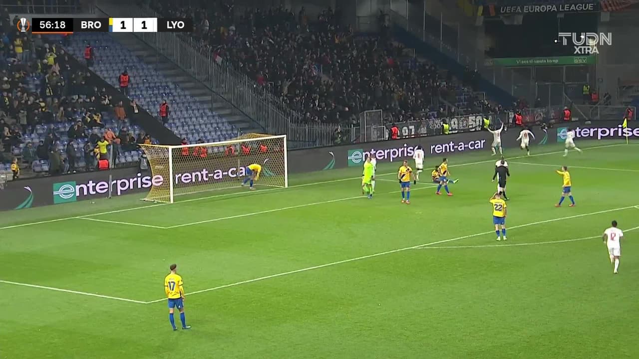 Tiro atajado. Islam Slimani (Lyon) zurdazo desde el lado izquierdo dentro del área.