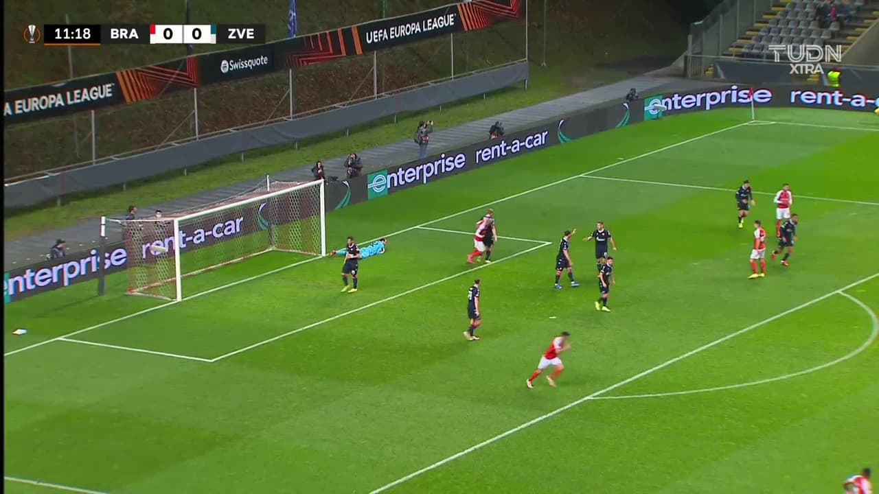 Tiro atajado junto al lado derecho de la portería. Iuri Medeiros (Sporting Braga) Disparo con la derecha desde el lado derecho dentro del área. Asistencia de Vítor Oliveira.