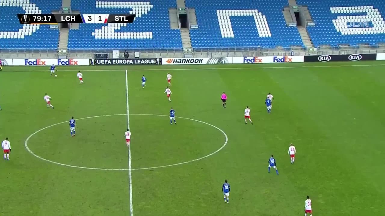 Tiro atajado por abajo a la izquierda. Jakub Kaminski (Lech Poznan) Disparo con la derecha desde el lado derecho dentro del área. Asistencia de Jan Sykora.