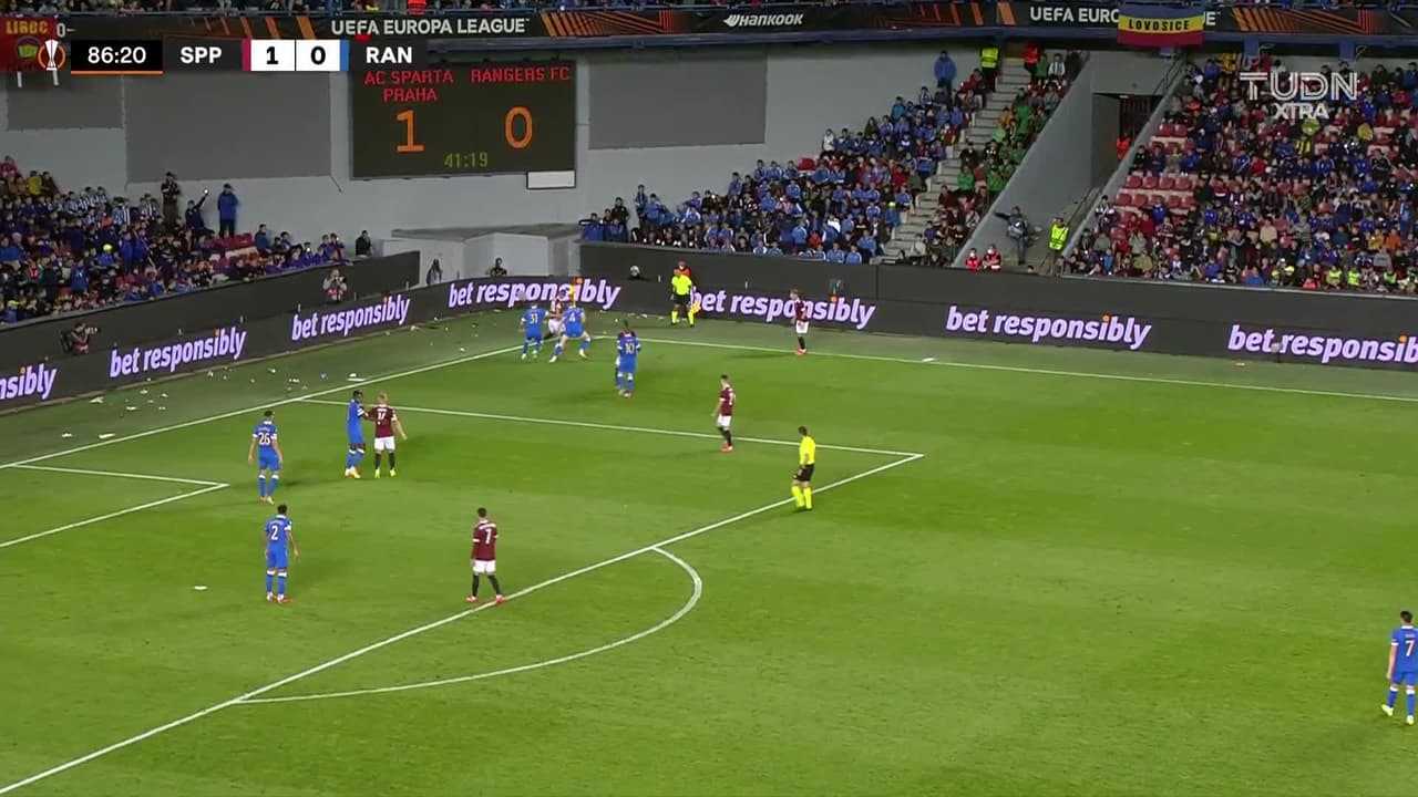 Tiro atajado raso al centro del arco. Jakub Pesek (Sparta Prague) zurdazo desde el lado derecho dentro del área. Asistencia de Tomás Wiesner.
