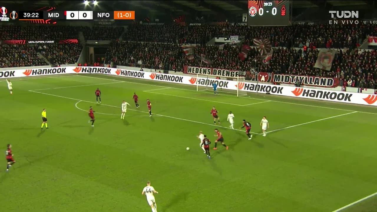Tiro atajado junto al lado derecho de la portería. James McAtee (Nottingham Forest) zurdazo desde fuera del área. Asistencia de Omari Hutchinson.