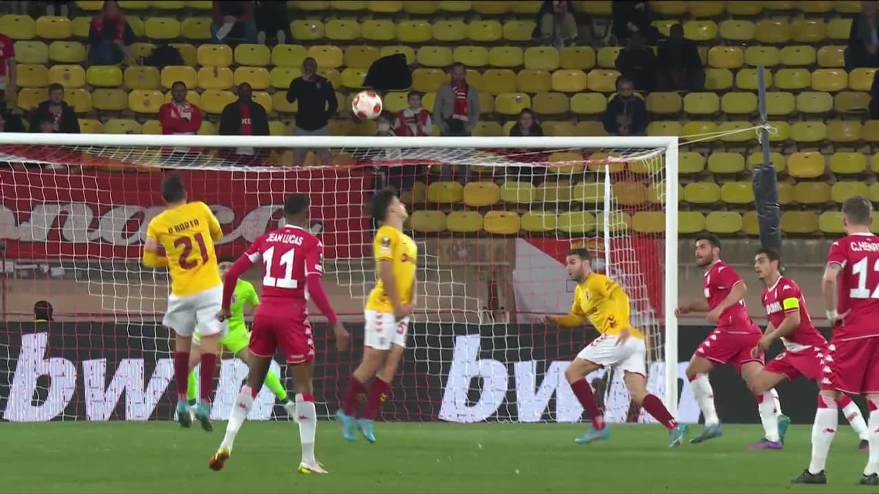 Tiro atajado al ángulo superior derecho. Jean Lucas (AS Monaco) Disparo con la derecha desde fuera del área.