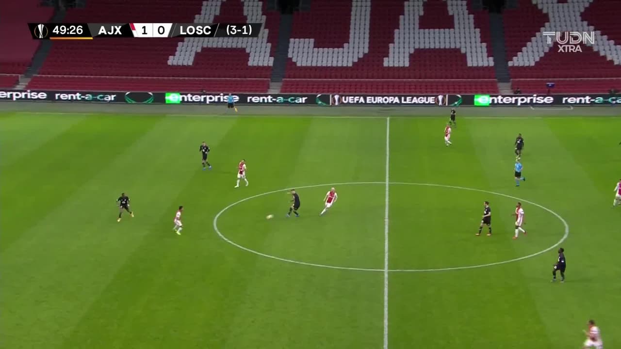 Tiro atajado. Jonathan Bamba (Lille) Disparo con la derecha desde fuera del área.