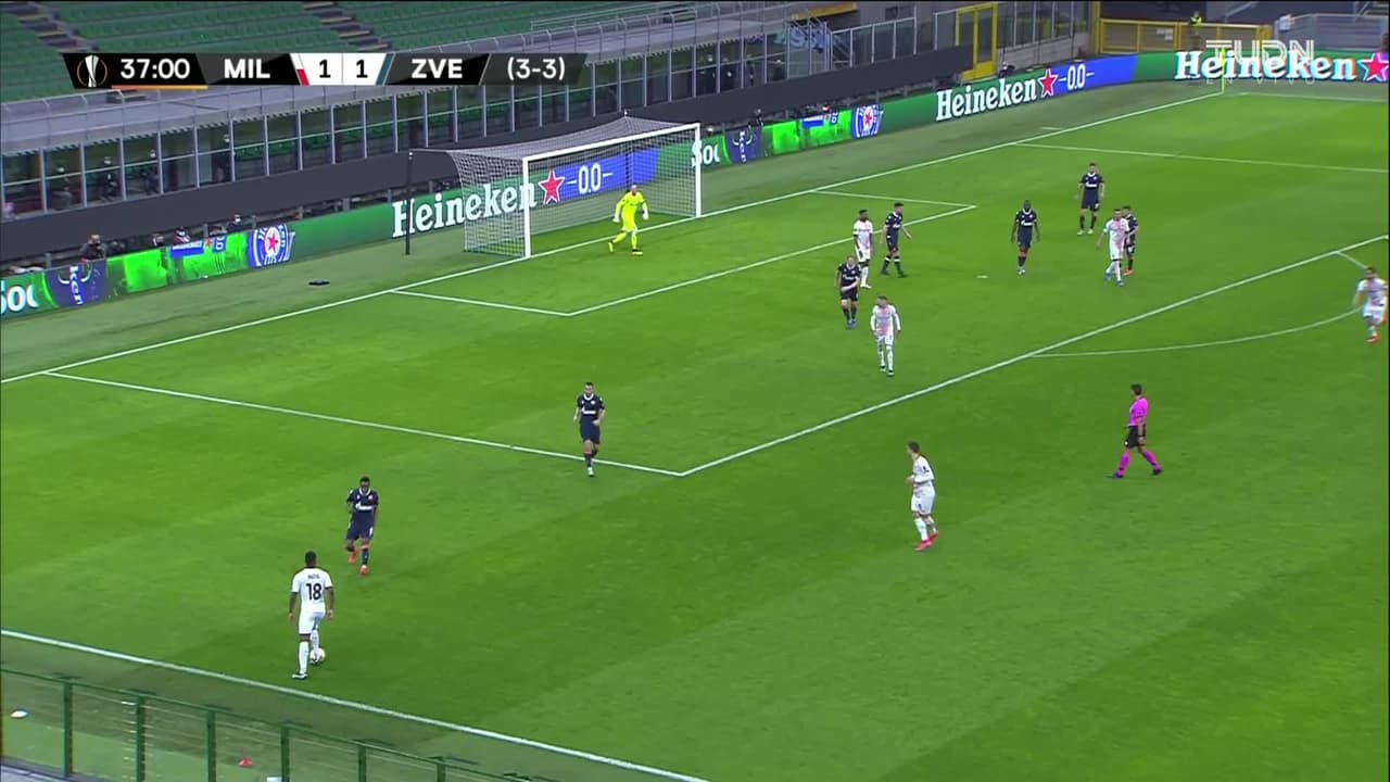 Tiro atajado por abajo a la izquierda. Diogo Dalot (Milan) Disparo con la derecha desde el centro del área. Asistencia de Davide Calabria con un centro al área.
