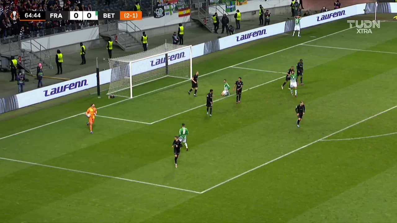 Tiro atajado por abajo a la izquierda. Juanmi (Real Betis) disparo de cabeza desde el centro del área. Asistencia de Joaquín con un centro al área.
