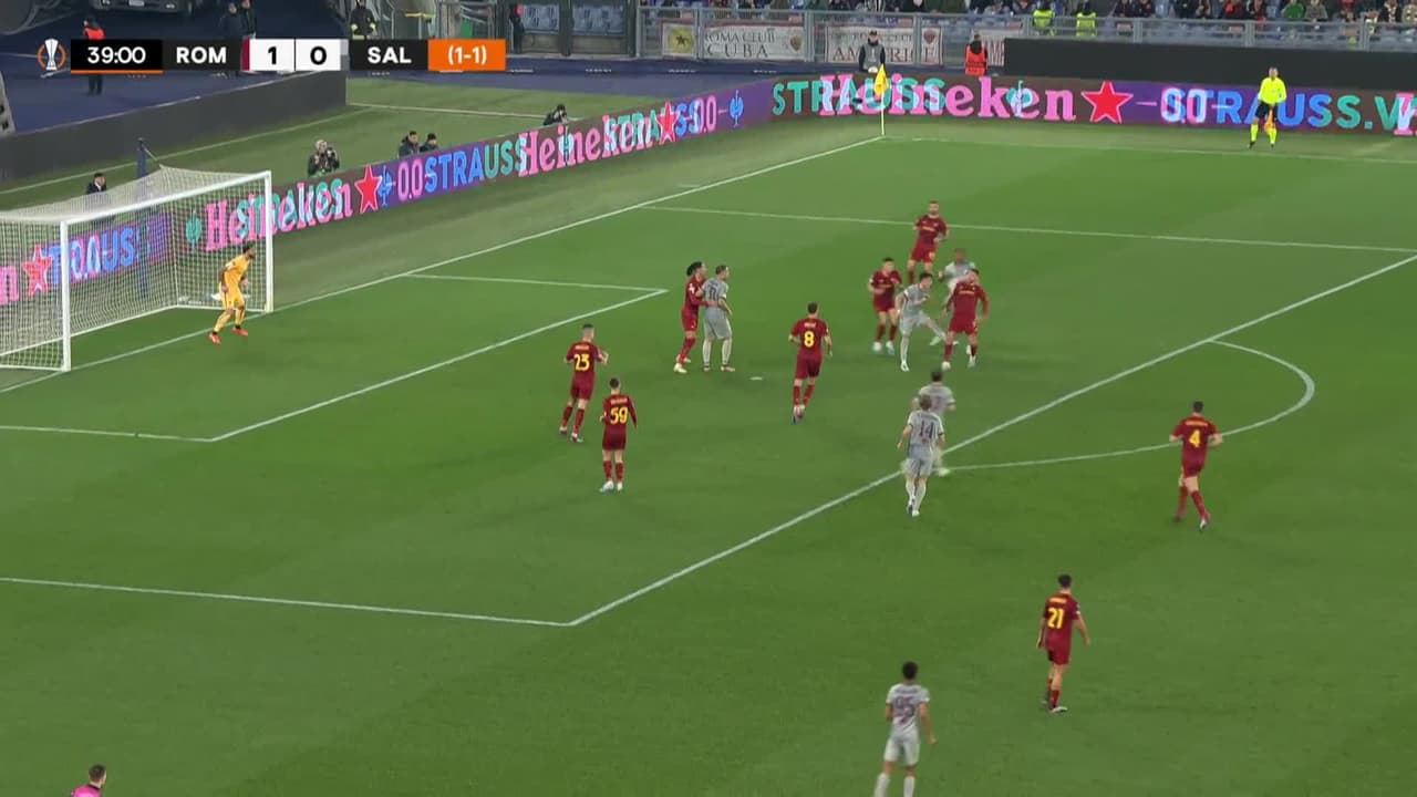 Tiro atajado Por arriba en el centro del arco. Junior Adamu (FC Red Bull Salzburg) zurdazo desde el centro del área.