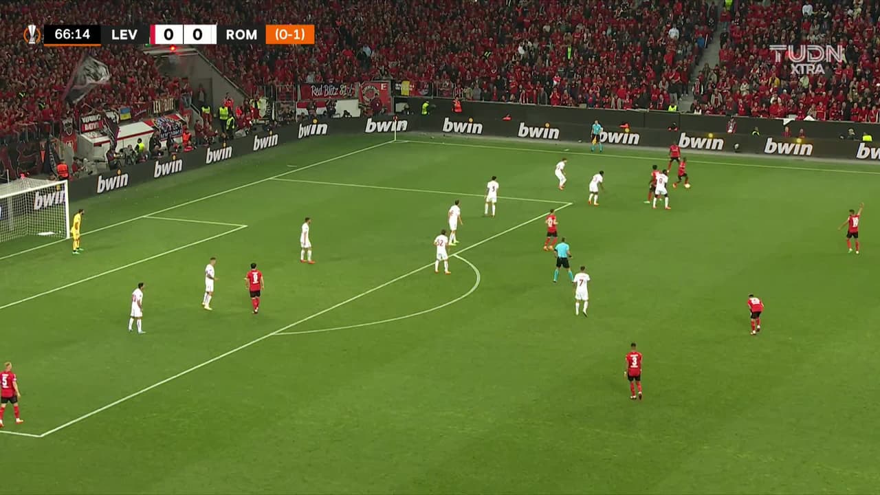 Tiro atajado junto al lado derecho de la portería. Kerem Demirbay (Bayer 04 Leverkusen) zurdazo desde fuera del área. Asistencia de Jeremie Frimpong.