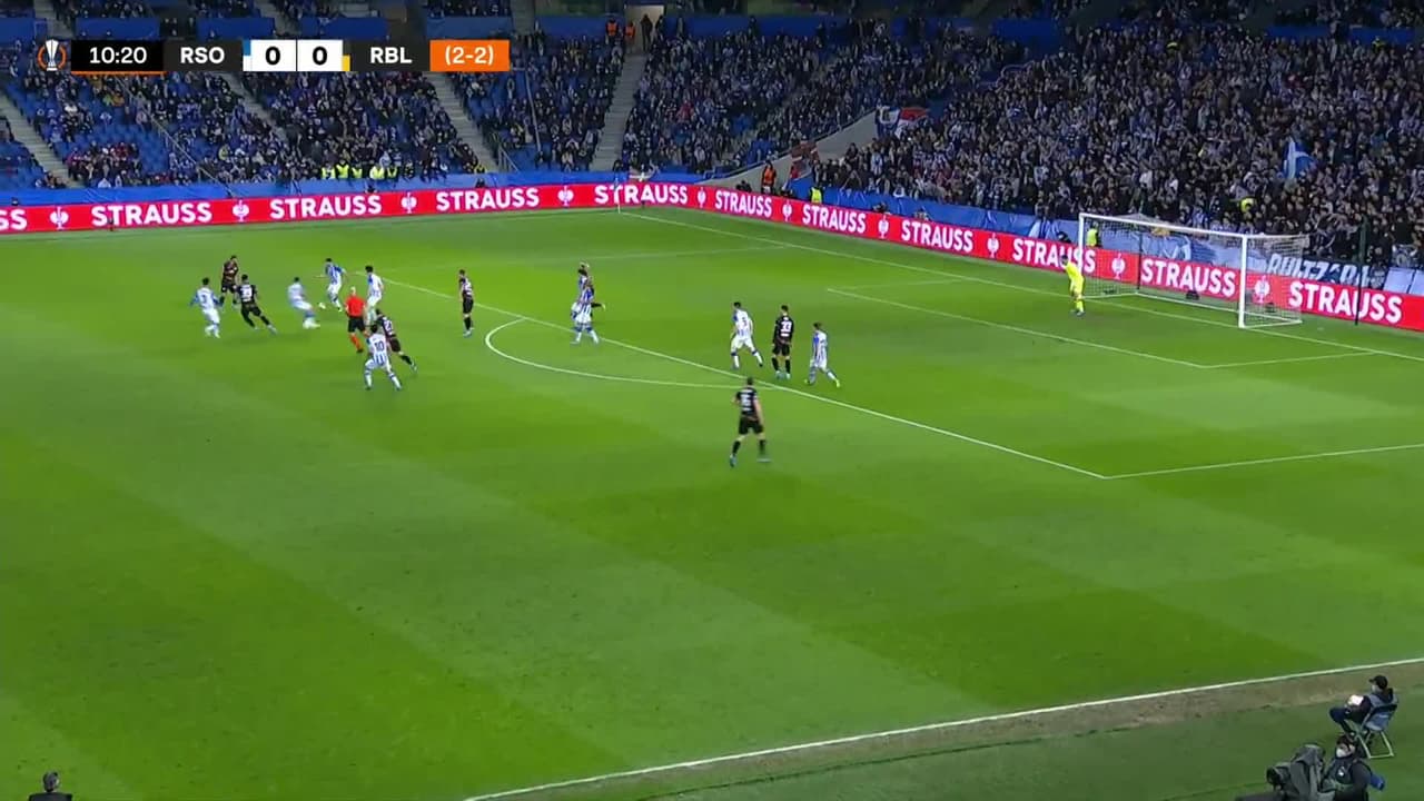 Tiro atajado Por arriba en el centro del arco. Kevin Kampl (RB Leipzig) Disparo con la derecha desde el centro del área.