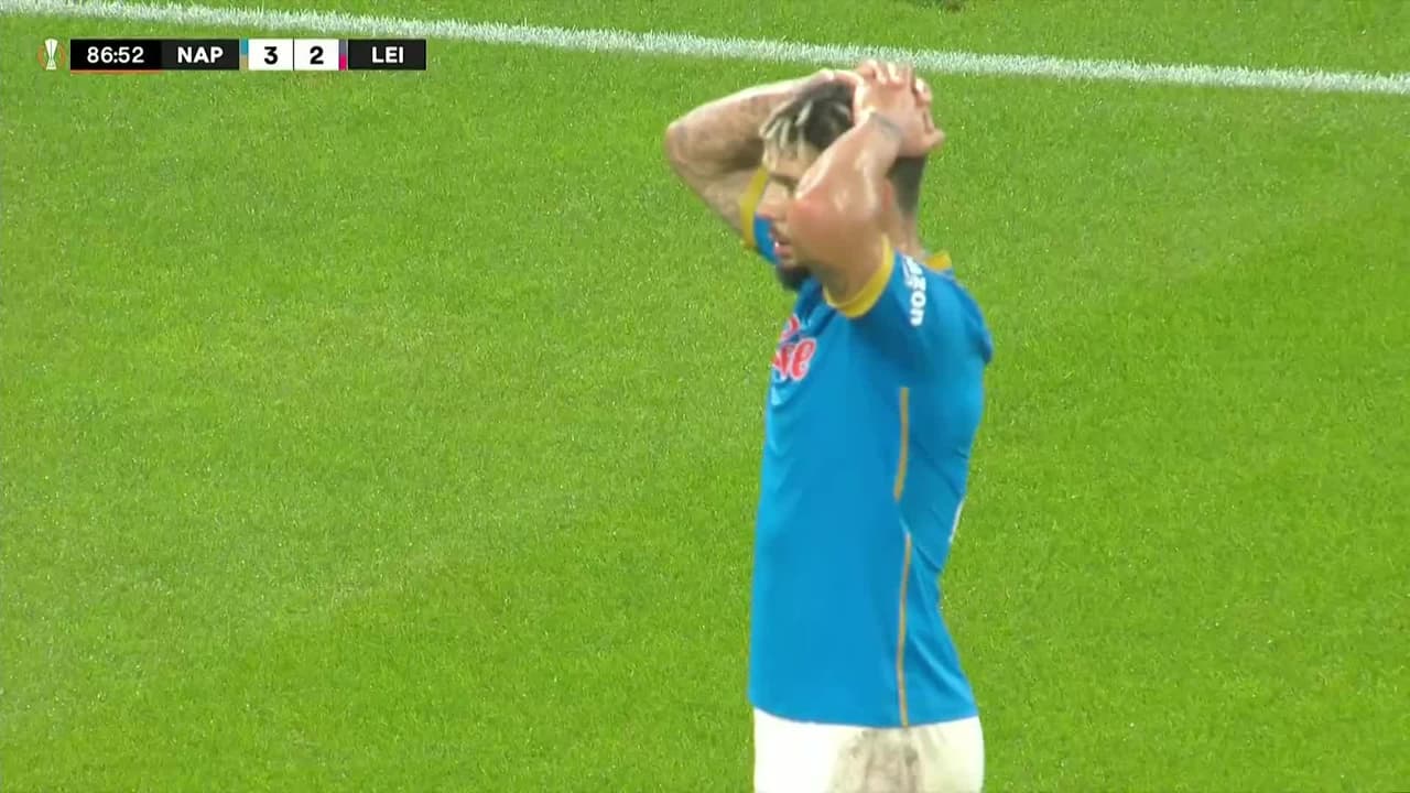 Tiro atajado al ángulo superior derecho. Kevin Malcuit (Napoli) Disparo con la derecha desde el lado derecho dentro del área. Asistencia de Dries Mertens.