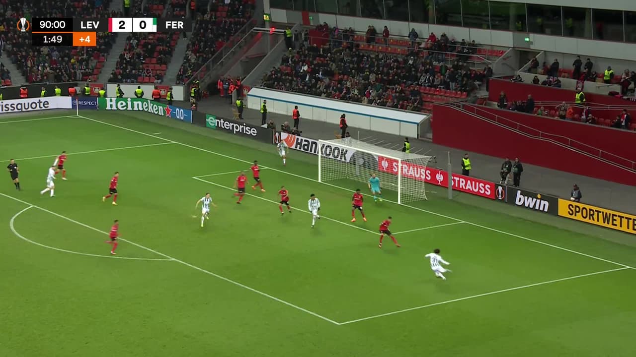 Tiro atajado. Kristoffer Zachariassen (Ferencvárosi TC) Disparo con la derecha desde el centro del área.