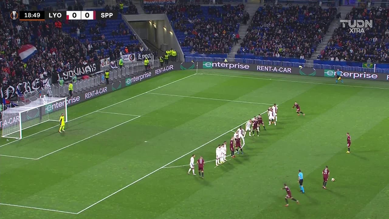 Tiro atajado. Ladislav Krejci II (Sparta Prague) disparo de cabeza desde el centro del área.