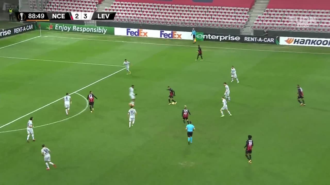 Tiro atajado por abajo a la izquierda. Leon Bailey (Bayer 04 Leverkusen) zurdazo desde el lado izquierdo dentro del área. Asistencia de Emrehan Gedikli.