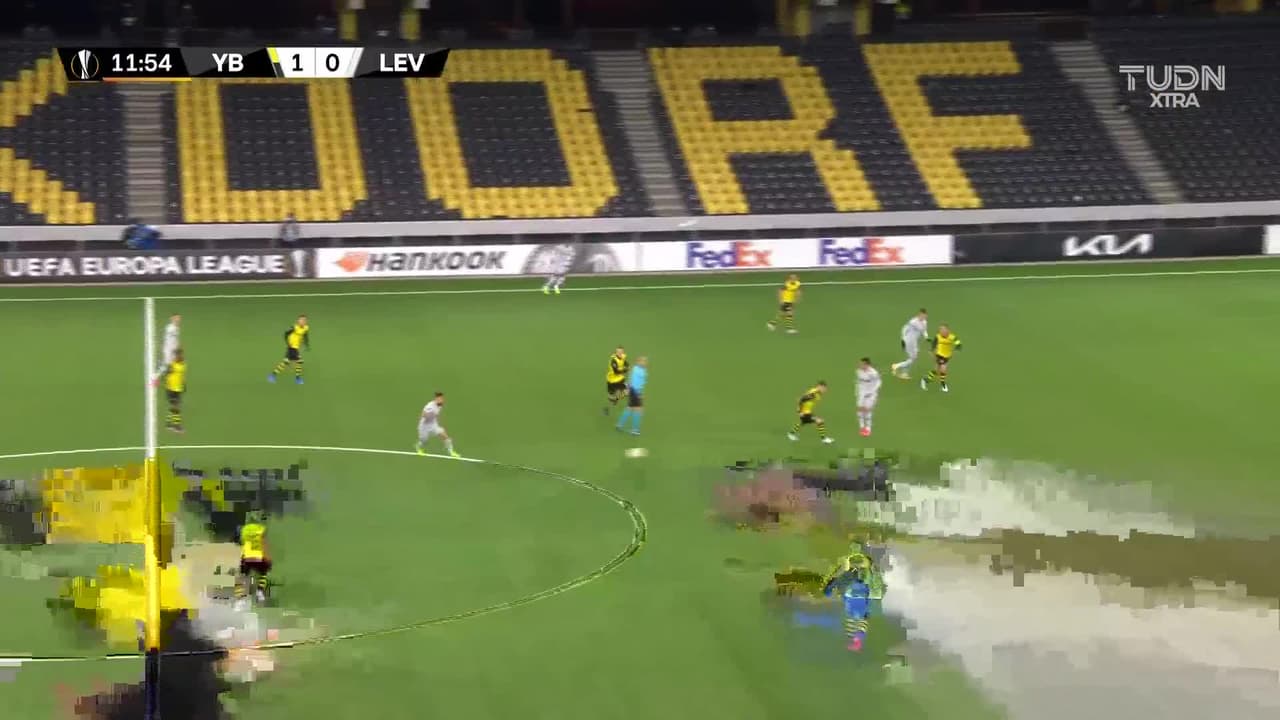 Tiro atajado junto al lado derecho de la portería. Leon Bailey (Bayer 04 Leverkusen) zurdazo desde fuera del área. Asistencia de Florian Wirtz.