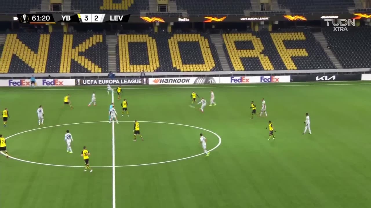 Tiro atajado raso al centro del arco. Leon Bailey (Bayer 04 Leverkusen) zurdazo desde muy lejos y sin ángulo. Asistencia de Florian Wirtz.