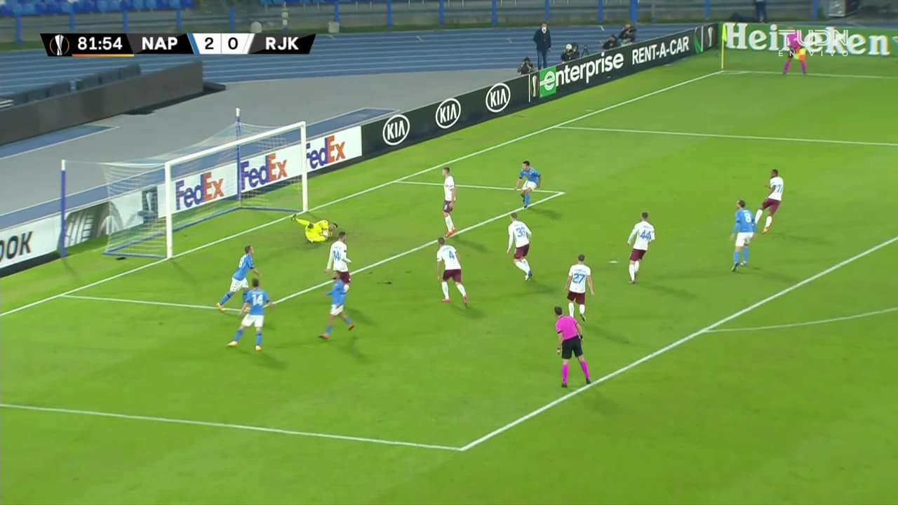 Tiro atajado junto al lado derecho de la portería. Lorenzo Insigne (Napoli) Disparo con la derecha desde el lado izquierdo dentro del área. Asistencia de Faouzi Ghoulam.