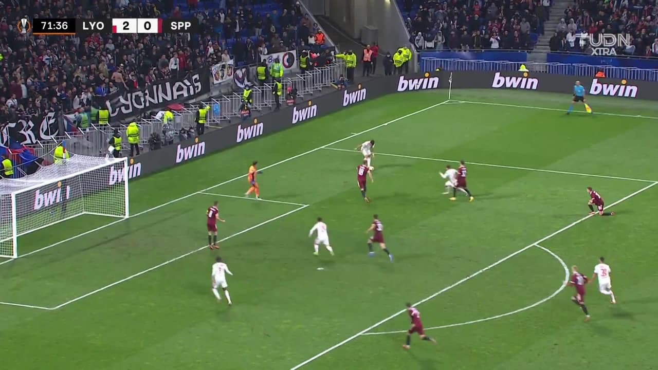 Tiro atajado por abajo a la izquierda. Lucas Paquetá (Lyon) zurdazo sin ángulo desde la derecha.