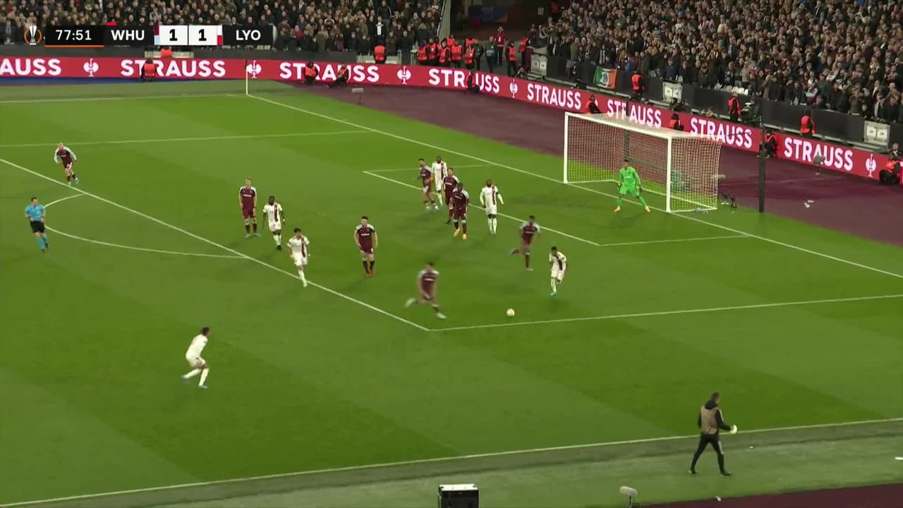 Tiro atajado al ángulo superior derecho. Lucas Paquetá (Lyon) Disparo con la derecha desde fuera del área. Asistencia de Tanguy Ndombele.