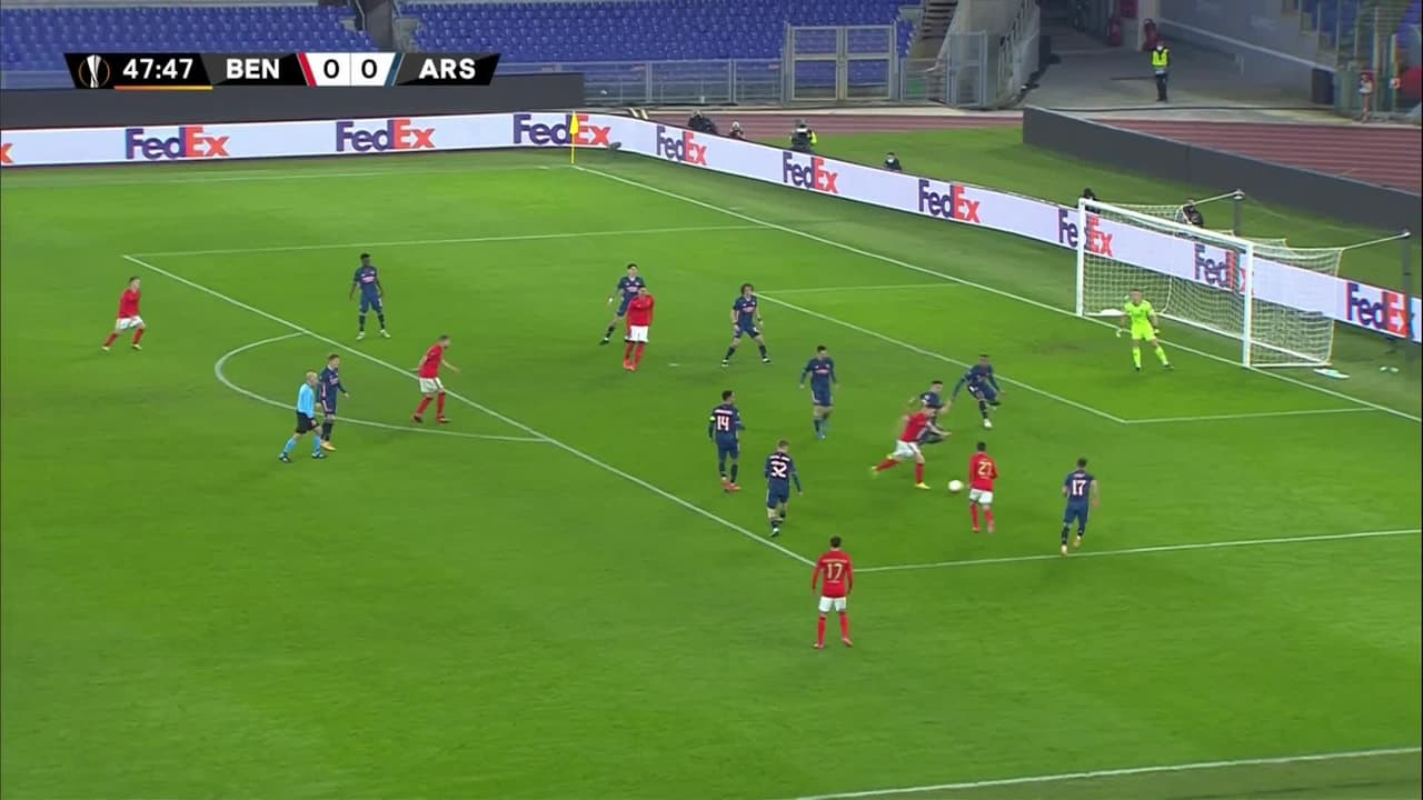 Tiro atajado por abajo a la izquierda. Pizzi (Benfica) Disparo con la derecha desde el lado derecho dentro del área. Asistencia de Diogo Gonçalves.