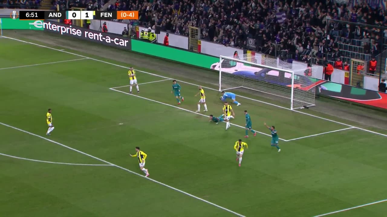Tiro atajado raso al centro del arco. Luis Vázquez (RSC Anderlecht) Disparo con la derecha desde el centro del área. Asistencia de Killian Sardella con un pase de cabeza.