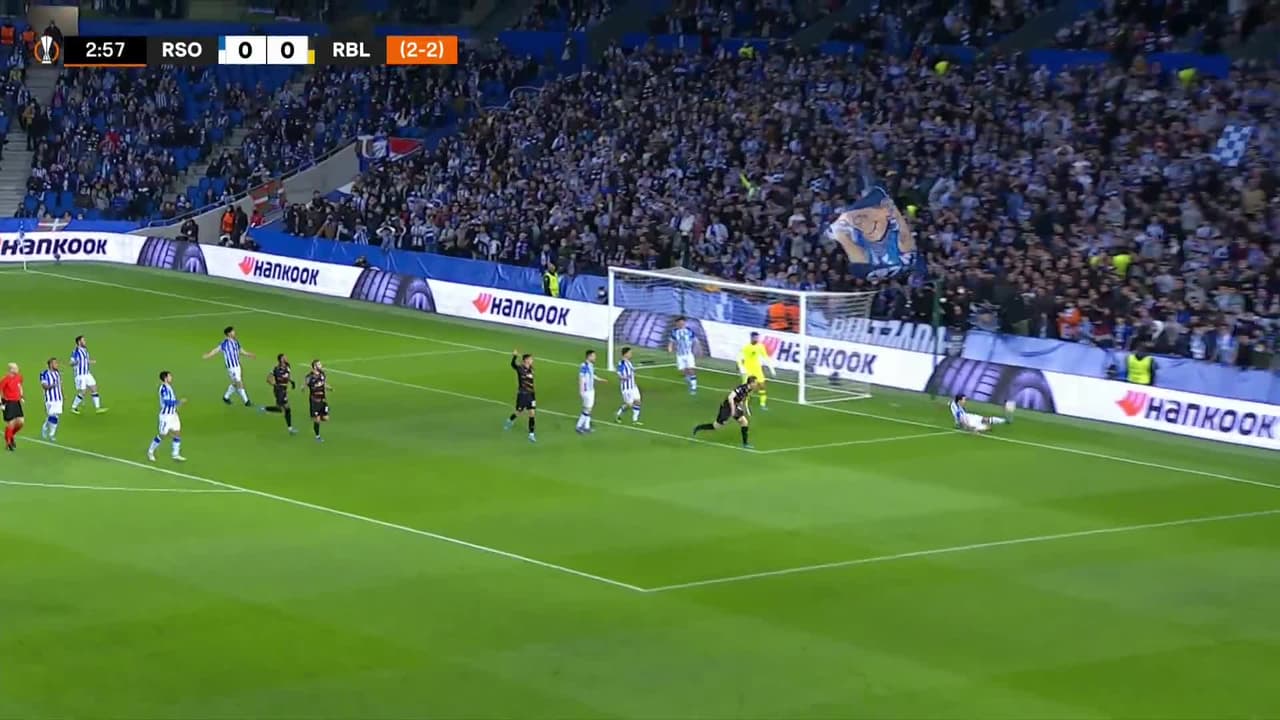 Tiro atajado por abajo a la izquierda. Lukas Klostermann (RB Leipzig) Disparo con la derecha desde el centro del área. Asistencia de Konrad Laimer.