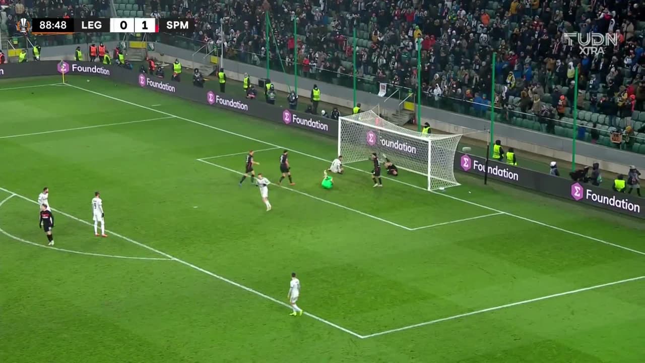 Tiro atajado por abajo a la izquierda. Maik Nawrocki (Legia Warsaw) Disparo con la derecha desde fuera del área. Asistencia de Mattias Johansson.
