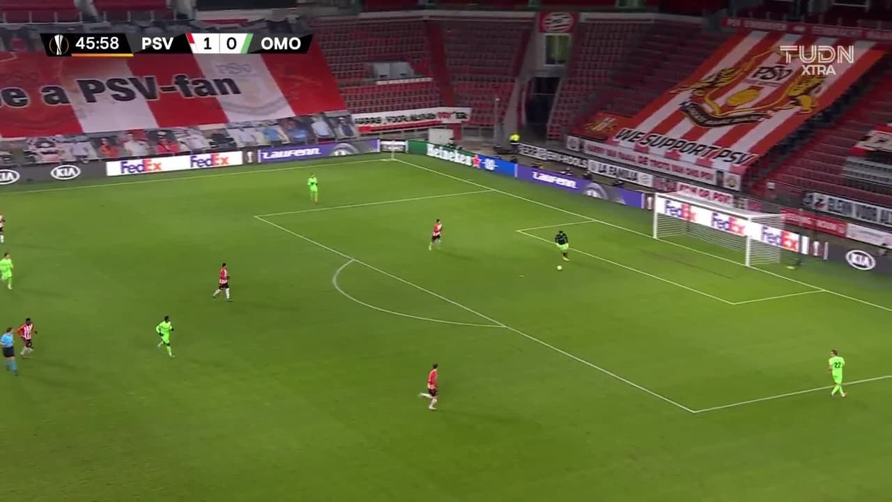 Tiro atajado junto al lado derecho de la portería. Mamadou Kaly Sene (Omonia Nicosia) Disparo con la derecha desde fuera del área. Asistencia de Marinos Tzionis.
