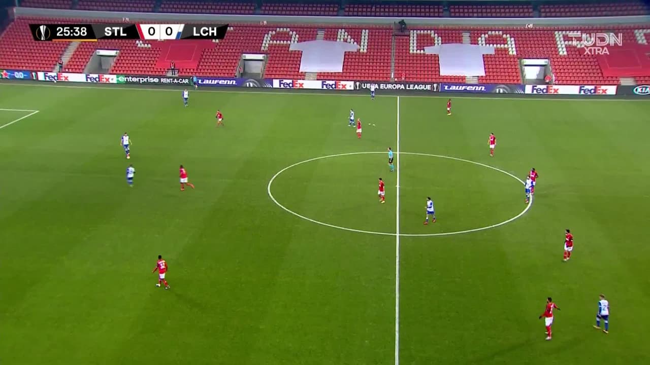 Tiro atajado. Obbi Oularé (Standard Liège) Disparo con la derecha desde el centro del área.
