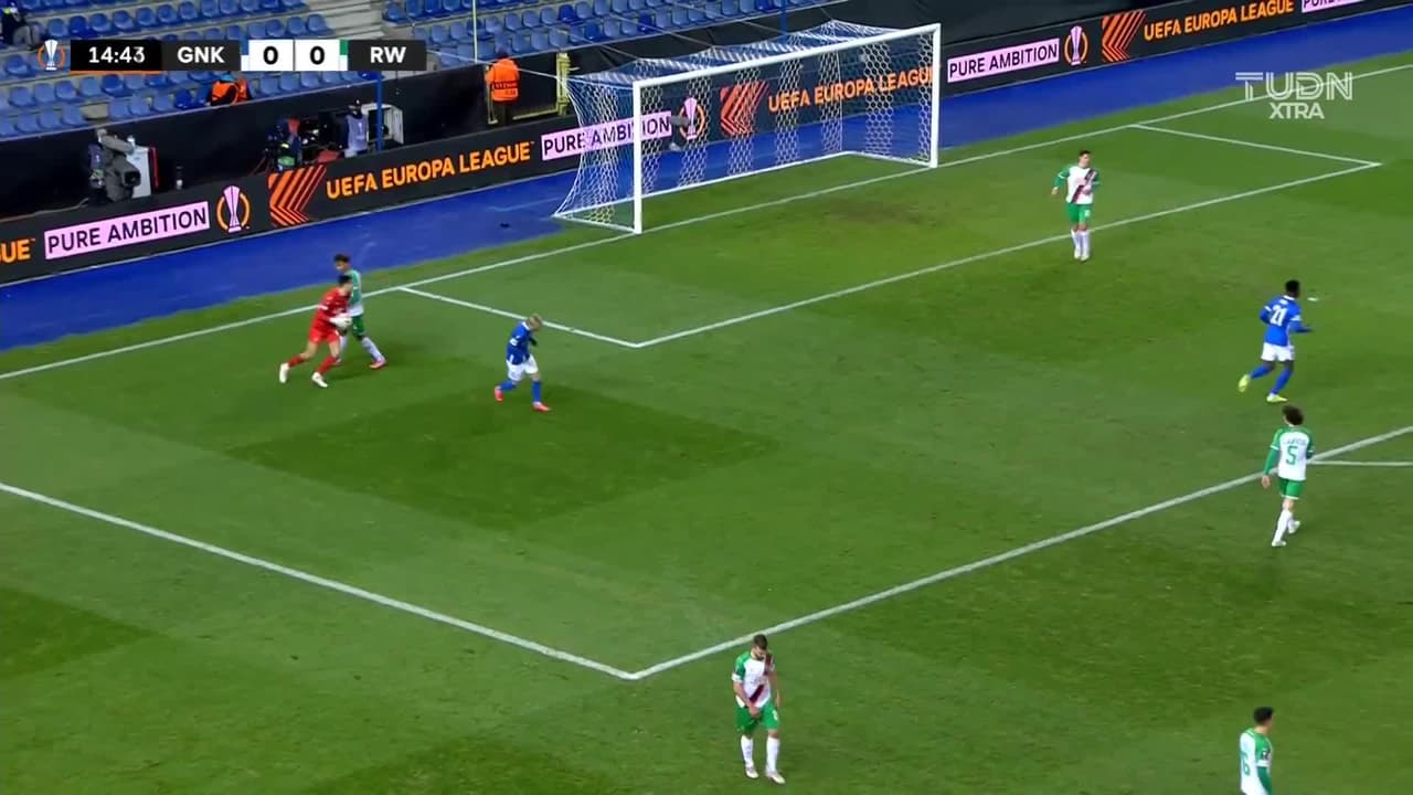 Tiro atajado por abajo a la izquierda. Marco Grüll (SK Rapid Wien) Disparo con la derecha desde fuera del área.