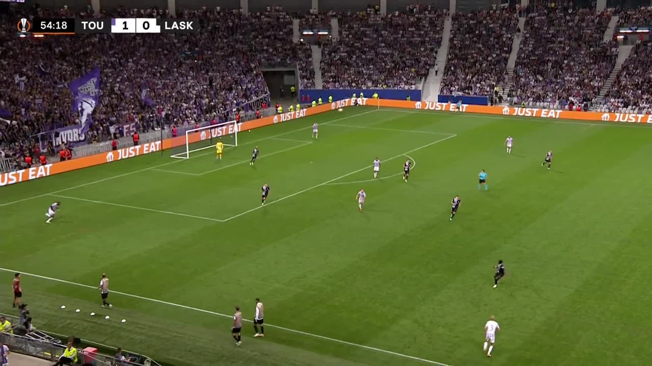 Tiro atajado junto al lado derecho de la portería. Marin Ljubicic (LASK) Disparo con la derecha desde el lado izquierdo dentro del área. Asistencia de Robert Zulj.