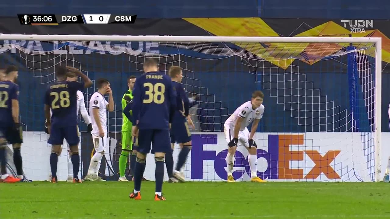 Tiro atajado por abajo a la izquierda. Mario Gavranovic (Dinamo Zagreb) Disparo con la derecha desde muy cerca. Asistencia de Lovro Majer con un centro al área.