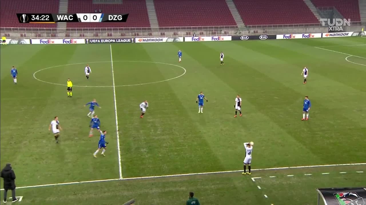 Tiro atajado por abajo a la izquierda. Mario Leitgeb (RZ Pellets WAC) Disparo con la derecha desde fuera del área. Asistencia de Christopher Wernitznig.