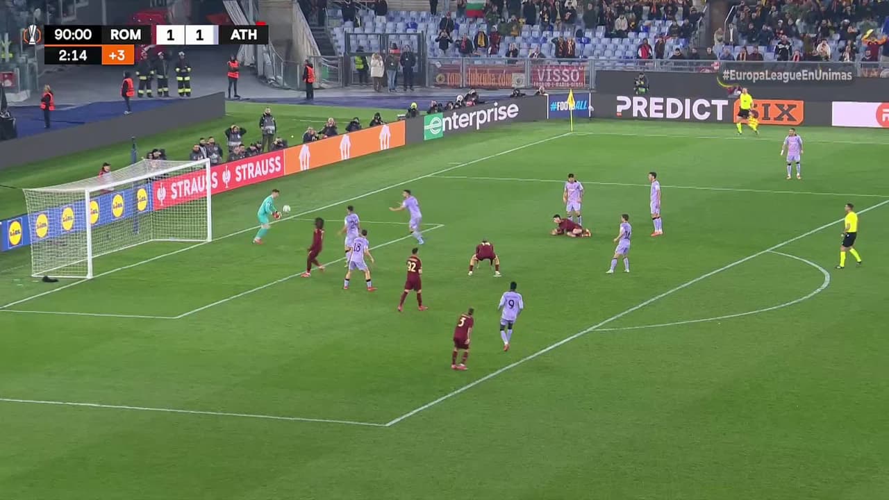 Tiro atajado al ángulo superior derecho. Matías Soulé (AS Roma) zurdazo desde el centro del área. Asistencia de Alexis Saelemaekers con un centro al área.