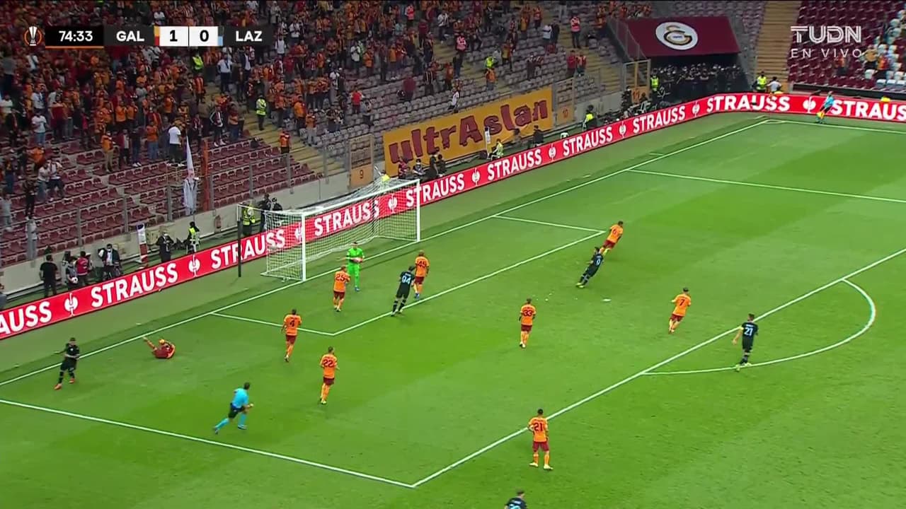Tiro atajado Por arriba en el centro del arco. Mattia Zaccagni (Lazio) zurdazo sin ángulo desde la izquierda. Asistencia de Sergej Milinkovic-Savic.