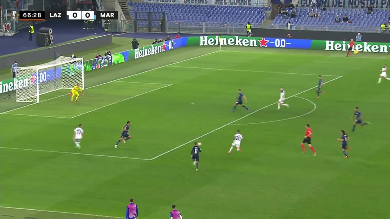 Tiro atajado al ángulo superior derecho. Mattia Zaccagni (Lazio) Disparo con la derecha desde fuera del área. Asistencia de Adam Marusic.